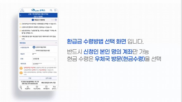 계좌로 받으실때 주의하실 점은 반드시 신청인 본인 명의의 계좌만 가능하며, 계좌 이체 방법이 아닌 현금 수령을 원하시는 분은 우체국 방문 현금수령을 선택해 주시면 됩니다.
