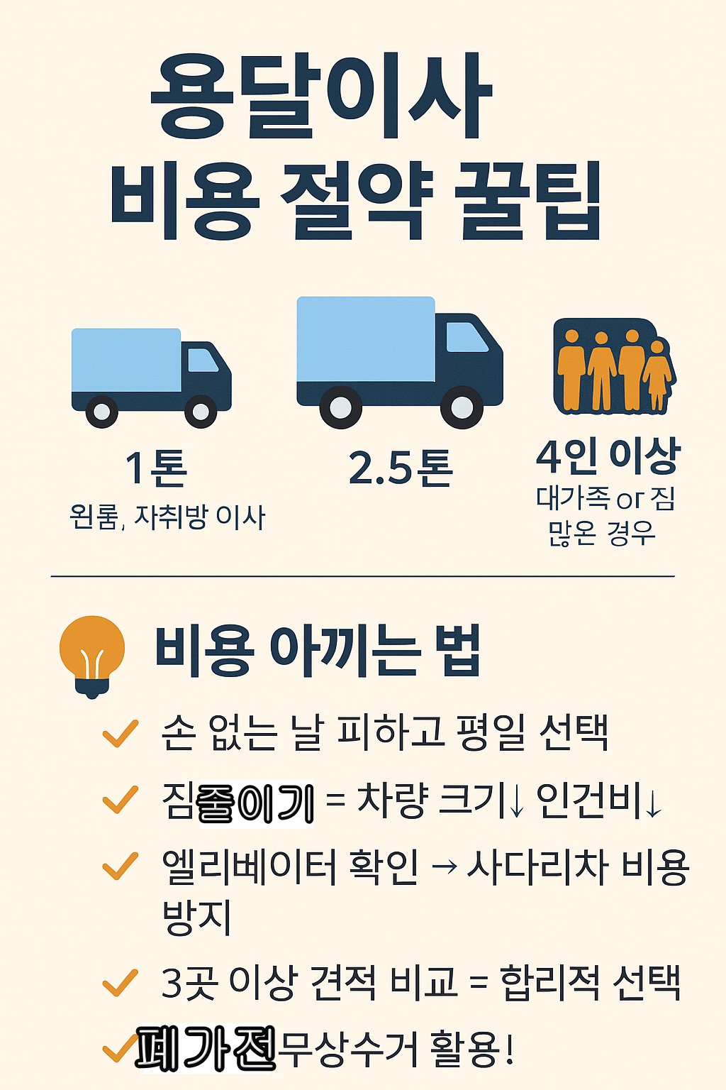 1톤부터 5톤까지, 이사 유형별 비교부터 견적 비교, 이삿짐 정리, 폐기물 처리, 업체 선정 시 고려사항, 그리고 이사 전후 체크리스트까지!