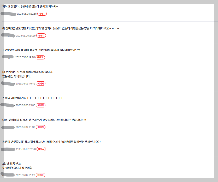 - 휠체어석 오픈: 2025년 5월 8일(목) 10:00