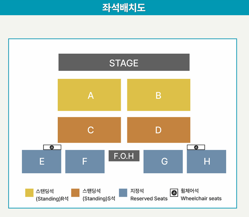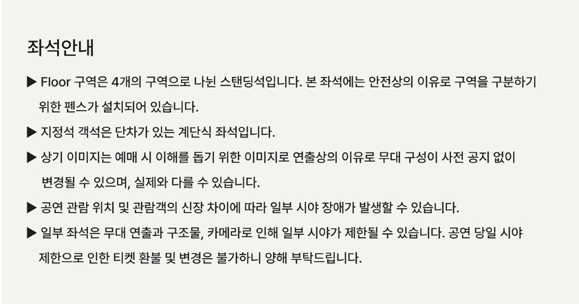 | 좌석가격 | 스탠딩 R석: 154,000원 스탠딩 S석 / 지정석: 143,000원 |