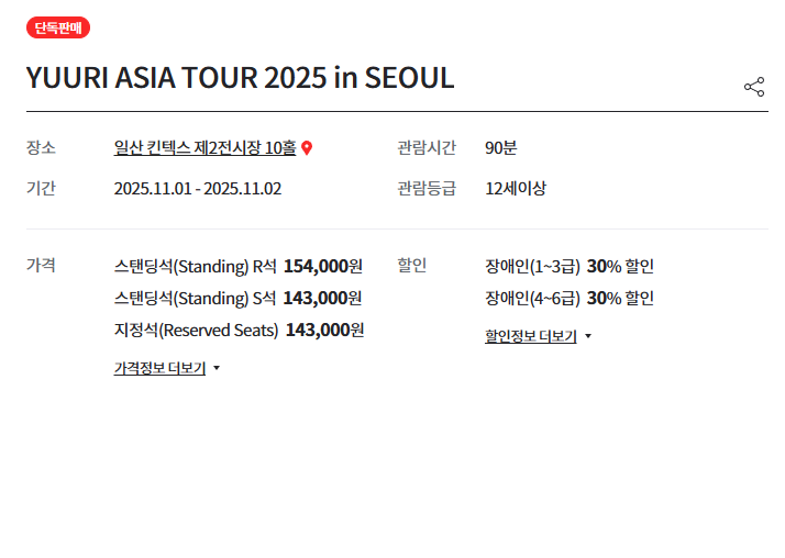 | 공연명 | YUURI ASIA TOUR 2025 in SEOUL - 고양 |