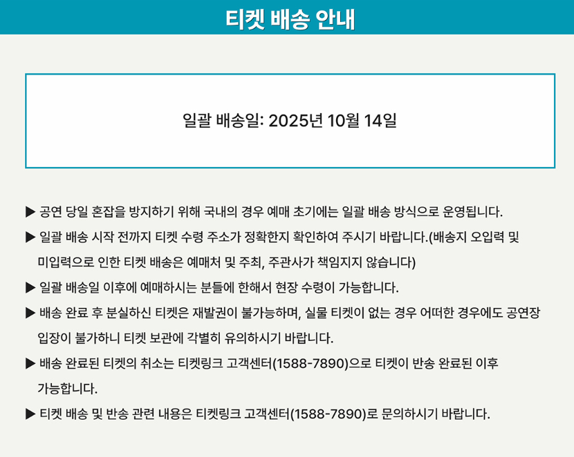 - 티켓 일괄배송: 2025년 10월 14일(화)