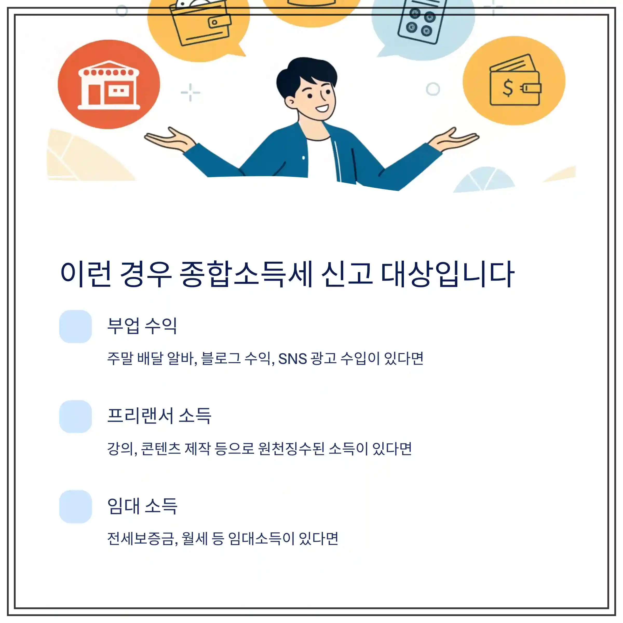 👉 이 모든 경우는 종합소득세 신고 대상자입니다.