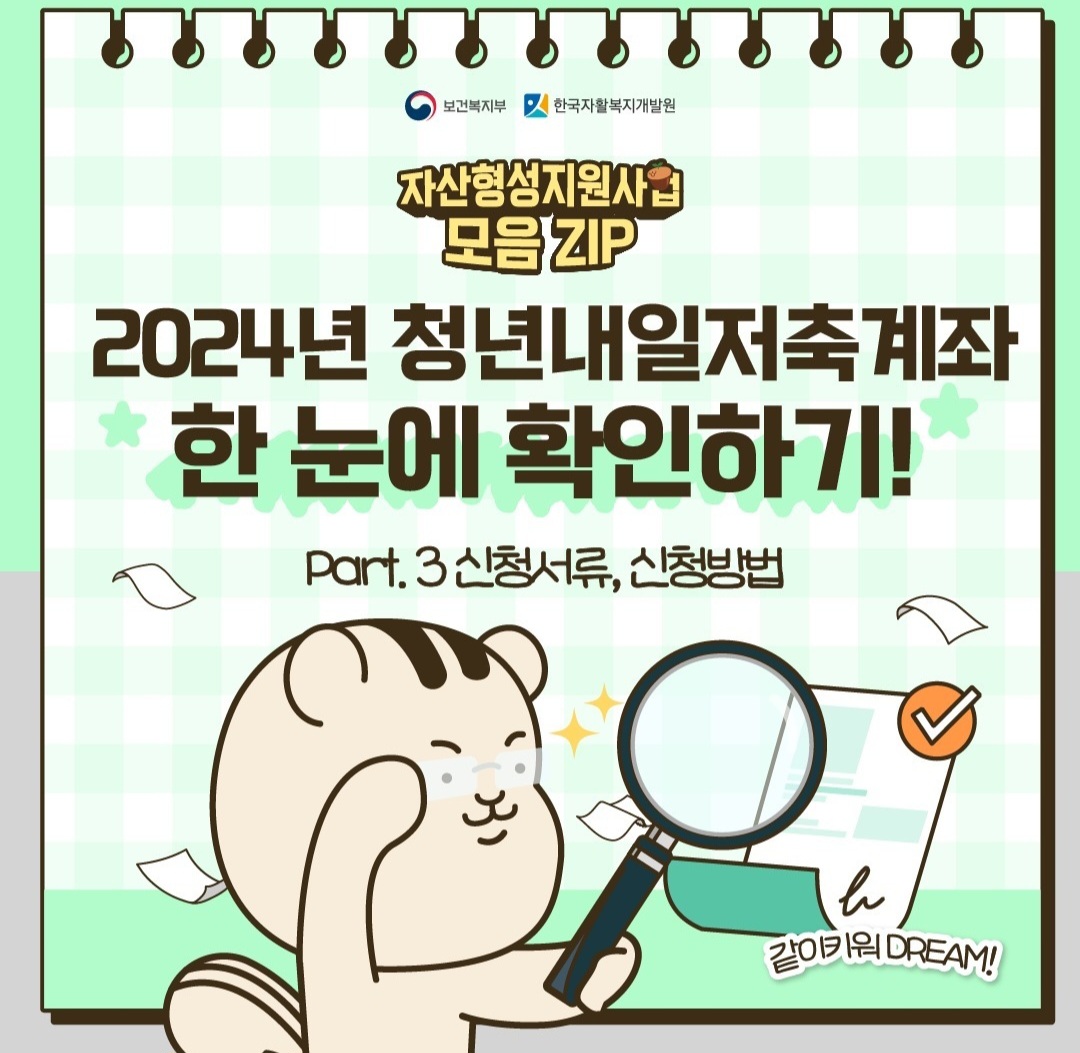청년에게 월 최대 30만원 및 근로소득장려금 최대 1,080만원 지원 과 추가지원금까지 적립시켜주는 청년내일저축계좌 참여자를 24.5.1. ~ 5. 21. 기간한정으로 모집하고 있습니다.