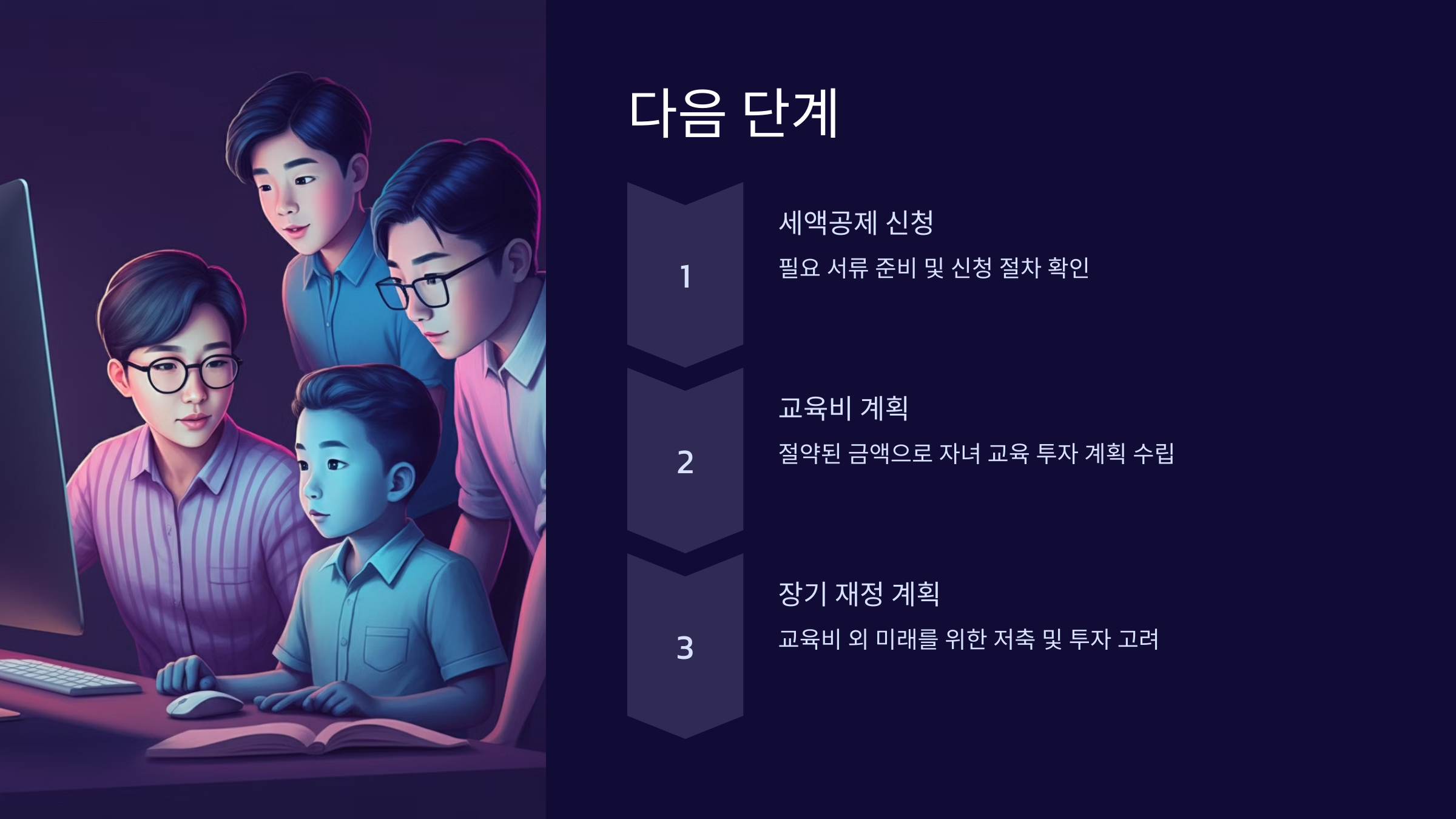 월세 세액공제를 통해 절약한 금액은 자녀의 현재 교육비뿐 아니라 미래를 위한 장기 투자에도 활용할 수 있습니다. 계획적인 활용은 학부모 가정의 재정 부담을 줄이고 자녀의 교육 환경을 더욱 풍요롭게 만들 것입니다.