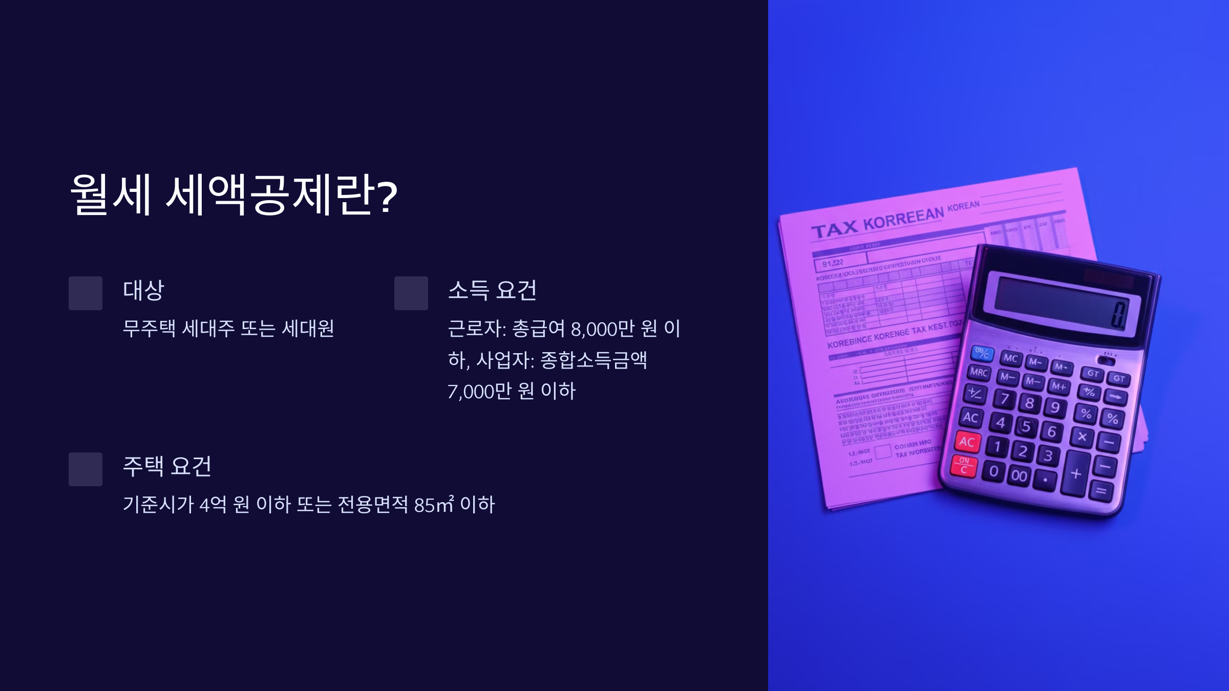 월세 세액공제는 무주택 세대주 또는 세대원이 주거비를 절약할 수 있도록 정부에서 지원하는 제도입니다.