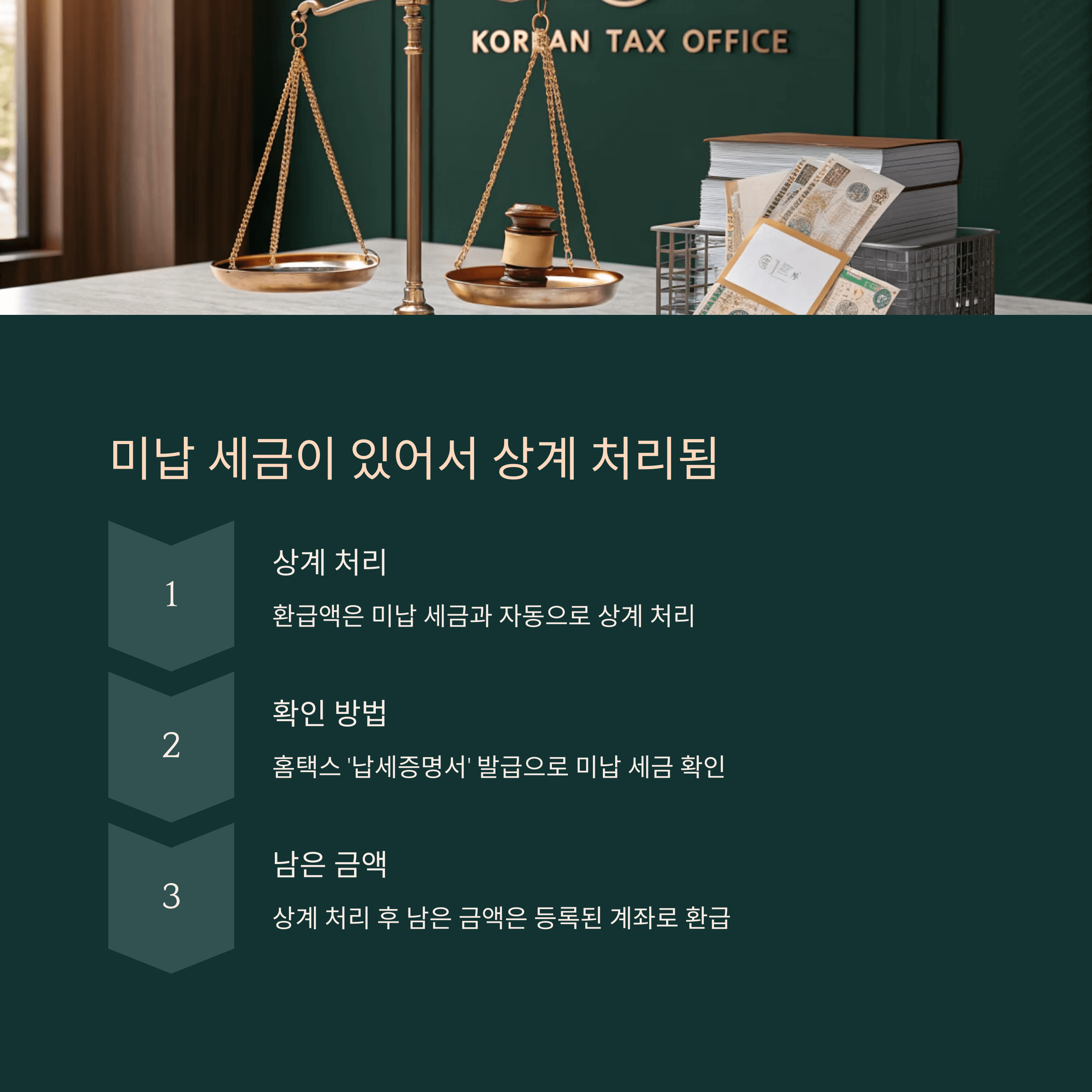 - 지방세, 교통범칙금 등은 상계 대상이 아니므로 별도 확인 필요