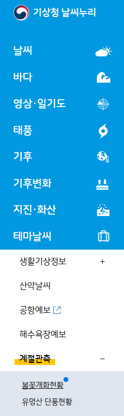 - 메뉴에서 "봄꽃 개화 현황" 선택