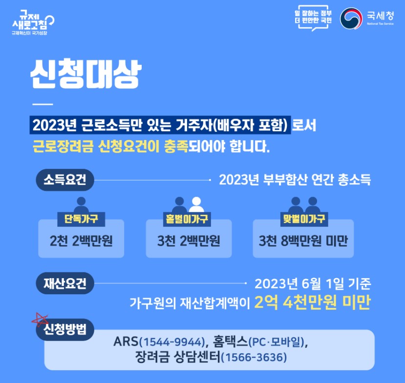 별도의 장려금 신청이 불필요하며 자동으로 신청되어 근로장려금을 받을 수 있다고 합니다.